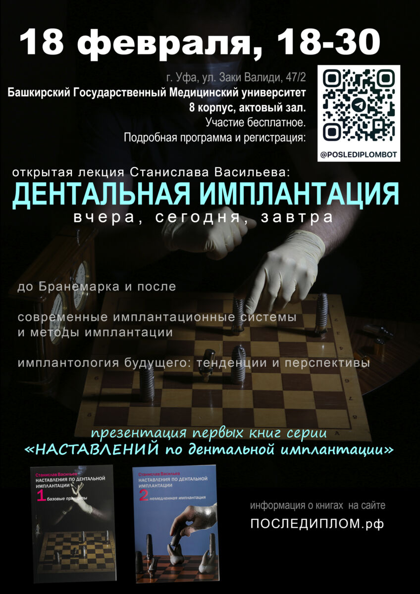 Я был бы рад увидеть на лекции всех, кто интересуется дентальной имплантацией, занимается её или рассматривает в качестве будущей профессии: студентов 4-5 курсов, клинических ординаторов, сотрудников профильных кафедр, начинающих врачей-стоматологов и всех-всех-всех…