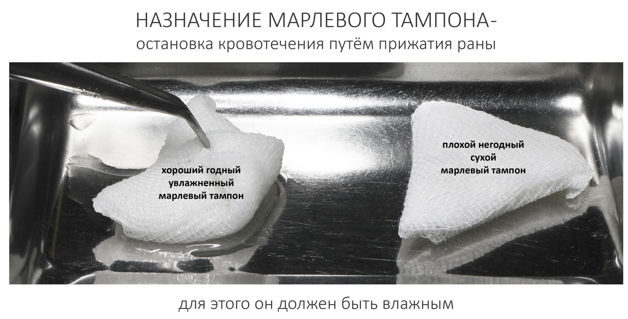 Вопреки распространенному мнению, марлевый тампон нужен не для того, чтобы впитывать кровь и прочие ротовые жидкости. Его назначение — это остановка кровотечения путем прижатия лунки или послеоперационной раны, подобно тому, как ты прижимаешь края пореза, чтобы остановить кровотечение из пальца. И для того, чтобы при удалении тампона из лунки не вылетел кровяной сгусток, мы его увлажняем. Не нужно менять тампон, если он пропитался кровью. Это нормально. Подожди полчасика — и аккуратно убери его из полости рта.