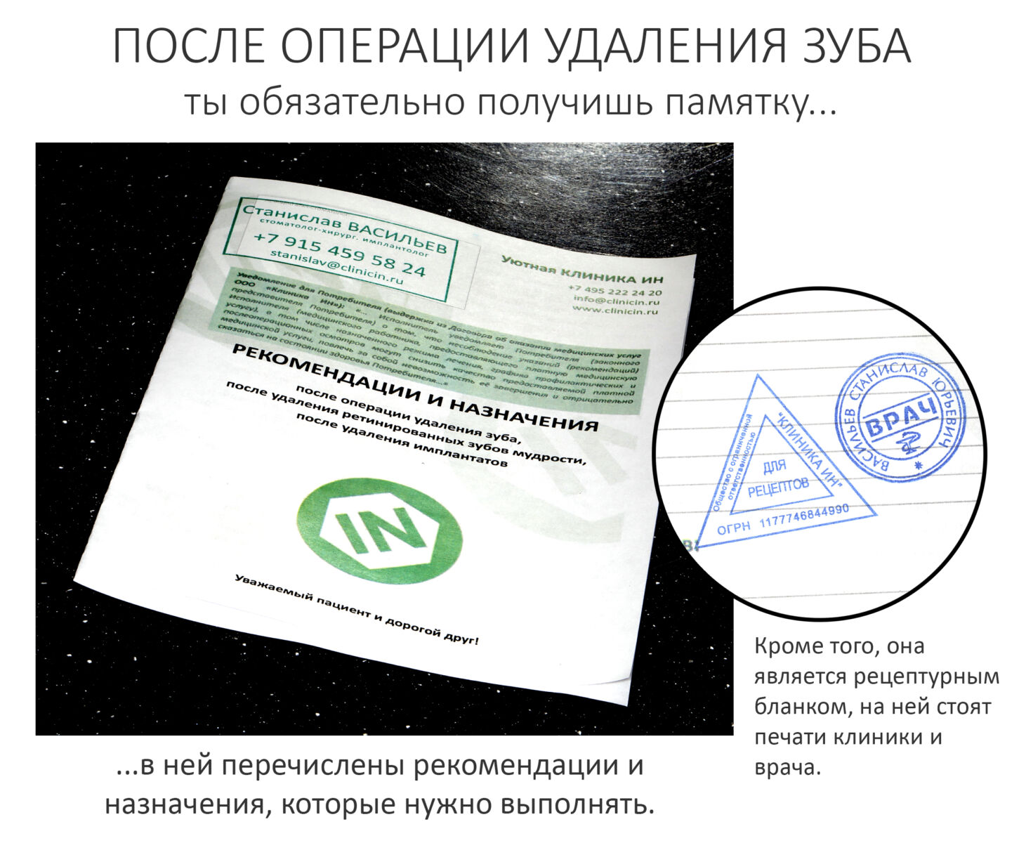 Огромное спасибо за доверие, терпение и правильное отношение к своему здоровью. Тебе только что была проведена хирургическая операция, удаление зуба или имплантата. К слову сказать, она является самым частым хирургическим вмешательством в мире. И самым опасным в стоматологии, номером один по количеству серьезных осложнений. Для того, чтобы свести вероятность этих осложнений к минимуму, ты должен внимательно прочитать всё, что написано ниже и следовать этим рекомендациям. Это не только убережет тебя от возможных проблем, но и сделает послеоперационный период более комфортным и безопасным.
